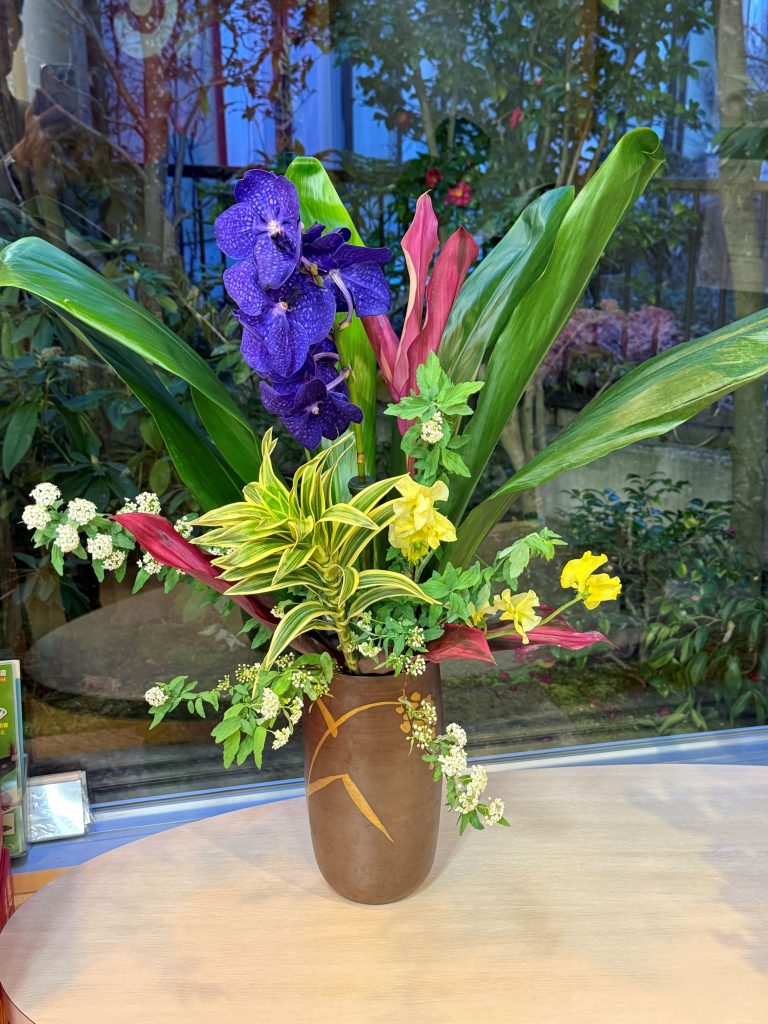 いけばなインターナショナルの2026年新年会に行ってきました。会場は東京のホテルニューオータニです。高円宮殿下にご臨席賜り、盛大な新年会。外国の領事館の方も出席され、あいさつの言葉は全て英語。ビックリです。各地からお花の家元をはじめとする会員が参加。お花を生けた会場も新年会らしいお花でいっぱい。宮城県代表が生けたお花を仙台へ帰るときにいただいて、私流に生けなおしました。